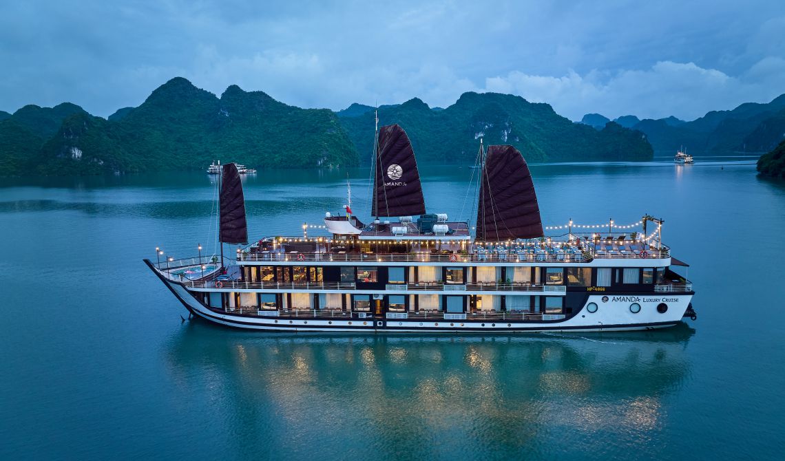 Amanda Luxury Cruise is a 20-cabin iron ship designed in an elegant French neoclassical style with traditional Asian nostalgic lines. All 20 rooms on the yacht have private bathtubs and balconies with panoramic views. The swimming pool with spa function on the bow embraces the magnificent natural scenery. Amanda Luxury Cruise always focuses on creating unforgettable customer experiences Amanda Luxury's itinerary will explore the beautiful Lan Ha Bay
