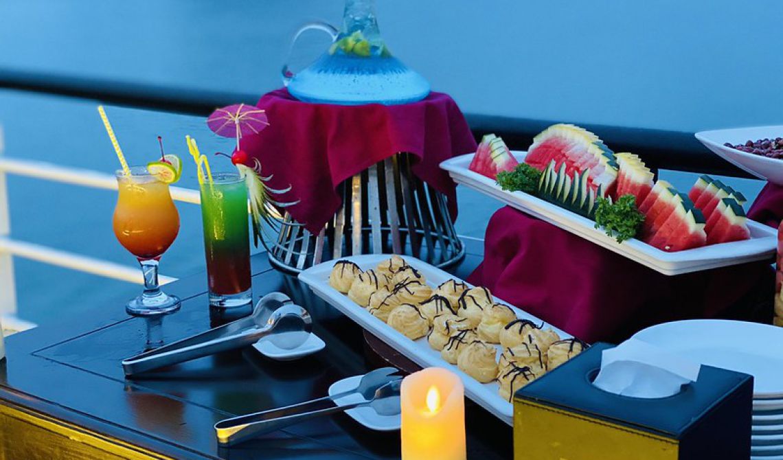 16:00: After that, you will get back to cruise and ready for our Sunset Party. Vietnamese tea, fresh fruits and snacks will be served when you’re relaxing on the sundeck or in the Jacuzzi.
