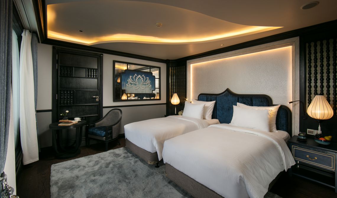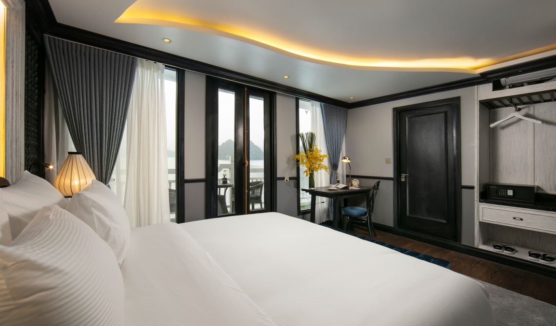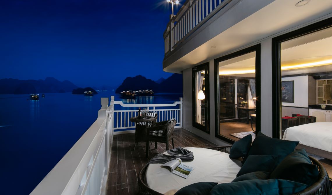 20:45 – 00:00: Enjoy the nightlife of Ha Long Bay from the deck. Immerse yourself in music, enjoy a glass of cocktail from the bar, sing karaoke and relax on the cruise. Otherwise, you can fish squid with the sailors or simply relax in the room and watch Ha Long Bay from the balcony.