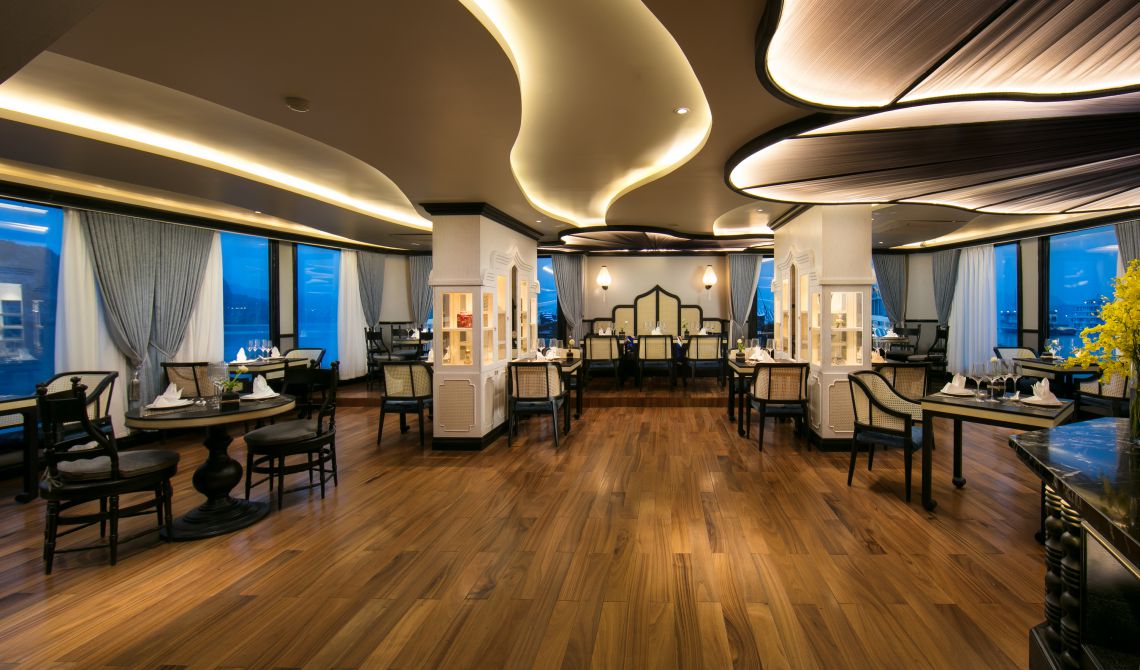 Enjoy delicious local food prepared and served for you by our wonderful onboard catering staff, night view on Lan Ha Bay is incredible.