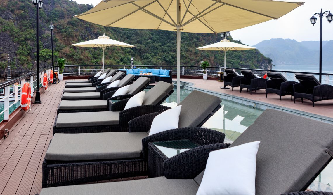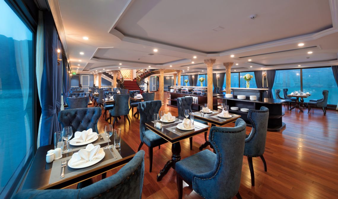 Le Theatre cruises are well- known as the first 5-star cruise ever that has the best itinerary through Halong Bay – Lan Ha Bay. We were also the leading entertainment for cruising in Halong bay. We are delighted to open BRAND NEW cruises in Ha Long Bay - Lan Ha Bay to serve our valued guests with best level of customer service throughout the length of journey to ensure your beautiful holiday be a truly unique and unforgettable experience on Le Theatre cruise. Le Theatre cruise is also called " Wonder on Lan Ha Bay", it is so great since this cruise with unique design, the interior looks like a Theatre, with luxury restaurant that offer high quality of food at all meals.