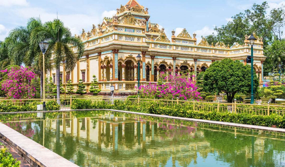 7h30AM Our tour guide will welcome you at your hotel in District 1 before heading to My Tho city by bus. Enjoy the scenery and green rice paddies during the one and a half hour bus ride. Along the way, we will visit Vinh Trang pagoda, the biggest pagoda in the Mekong delta. Continue to My Tho, where we take a boat trip along the Mekong River, where you can see fish cages and floating houses on the river.