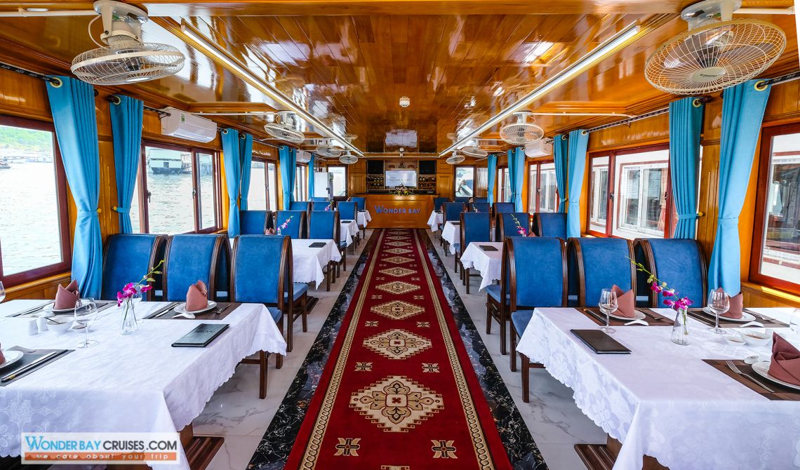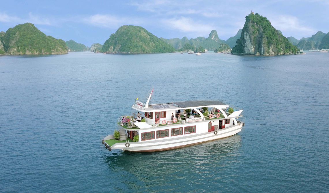 12:15 – Arrive Tuan Chau Harbor, welcome aboard, and safety briefing – Wonderbay will take you on an 5 hour journey via 2 day-sleeper boat cruise route which renowned for its striking, passages uninhabited islets and outcrops have been given imaginative names by the locals, due to their perceived shapes, including Cock Fighting and Thumb, while enjoy Vietnamese mouth-watering lunch on boat.