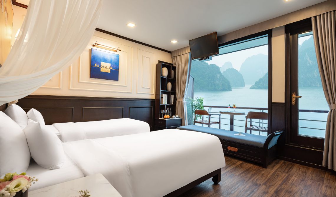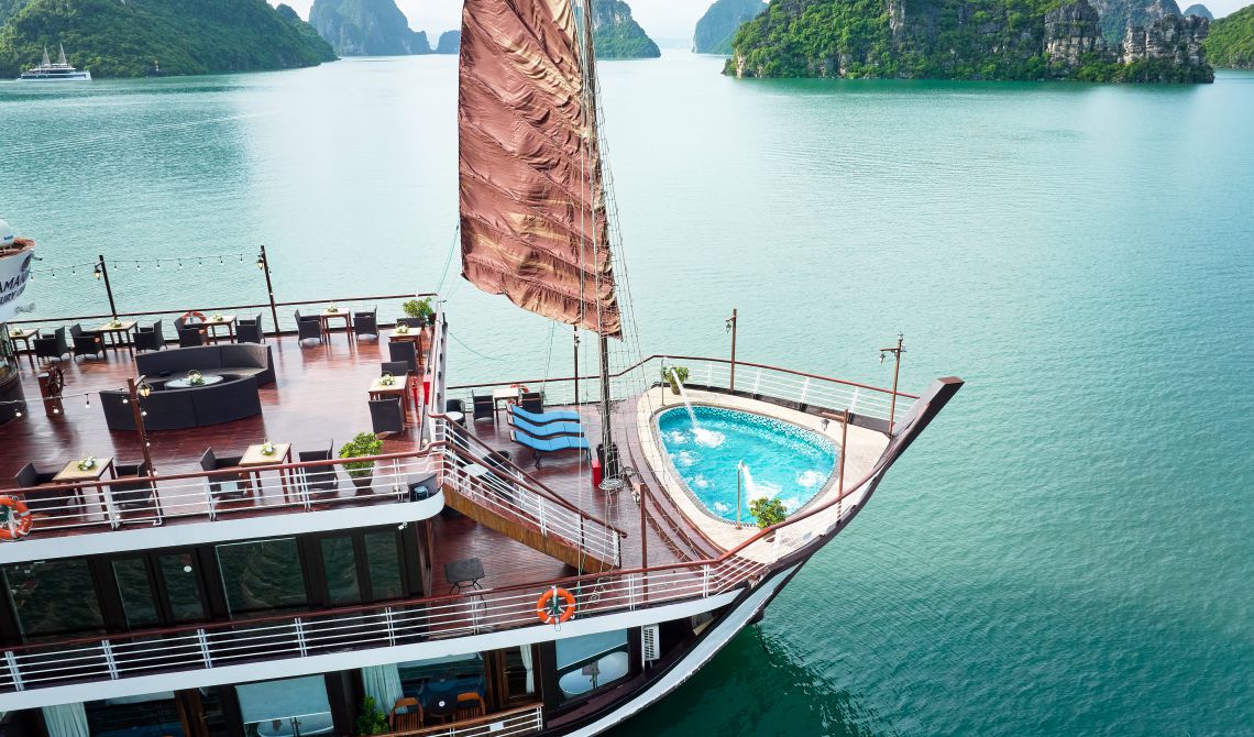 Amanda Luxury Cruise is a 20-cabin iron ship designed in an elegant French neoclassical style with traditional Asian nostalgic lines. All 20 rooms on the yacht have private bathtubs and balconies with panoramic views. The swimming pool with spa function on the bow embraces the magnificent natural scenery. Amanda Luxury Cruise always focuses on creating unforgettable customer experiences Amanda Luxury's itinerary will explore the beautiful Lan Ha Bay