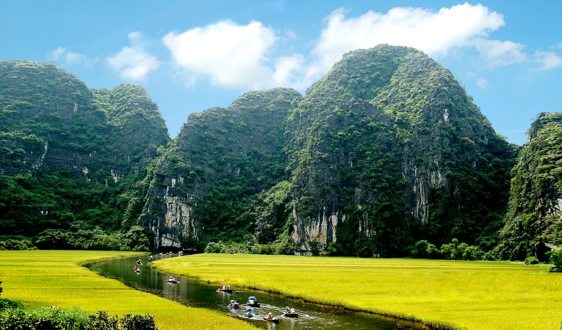 13:30 - Leave for the Trang An Grottoes, an out-standing natural beauty of majestic limestone massif at 20 square kilometer rise dramatically out from rice paddy fields. Deep into the linked chains of towering mountain are pristine places of mystical valleys, numerous fresh water ponds, and jungle.