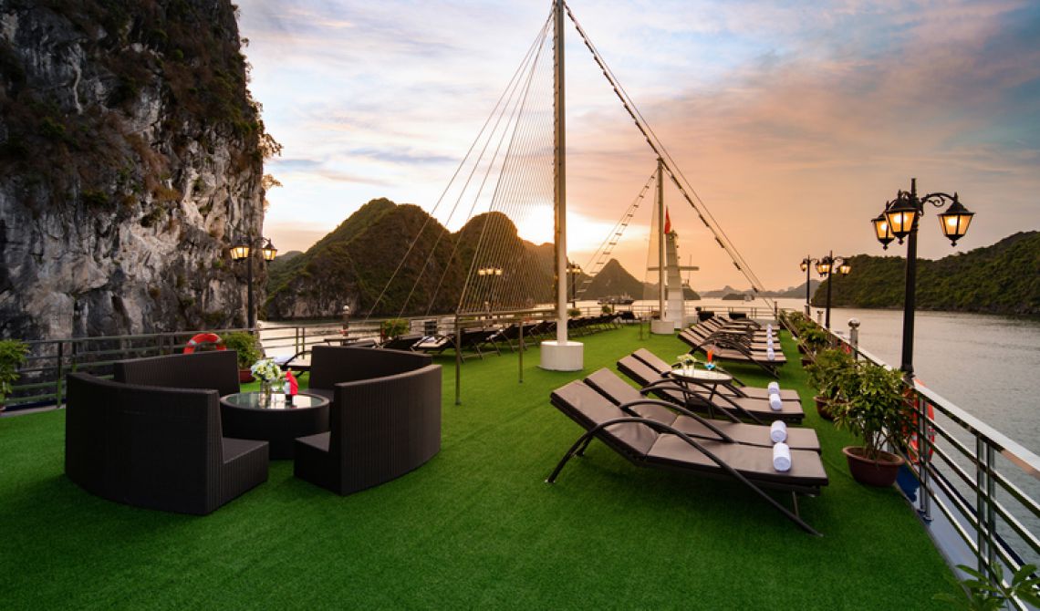 16:00: The Cruise sails through Lan Ha Bay. The area is surrounding of extraordinary limestone karsts landscapes. We progress to Ong Cam Area of Lan Ha Bay- a separate part of Ha LongBay. This is a quiet tourist paradise in Vietnam, enjoy kayaking and/or enjoy swimming in the crystal-clear waters of the Bay.