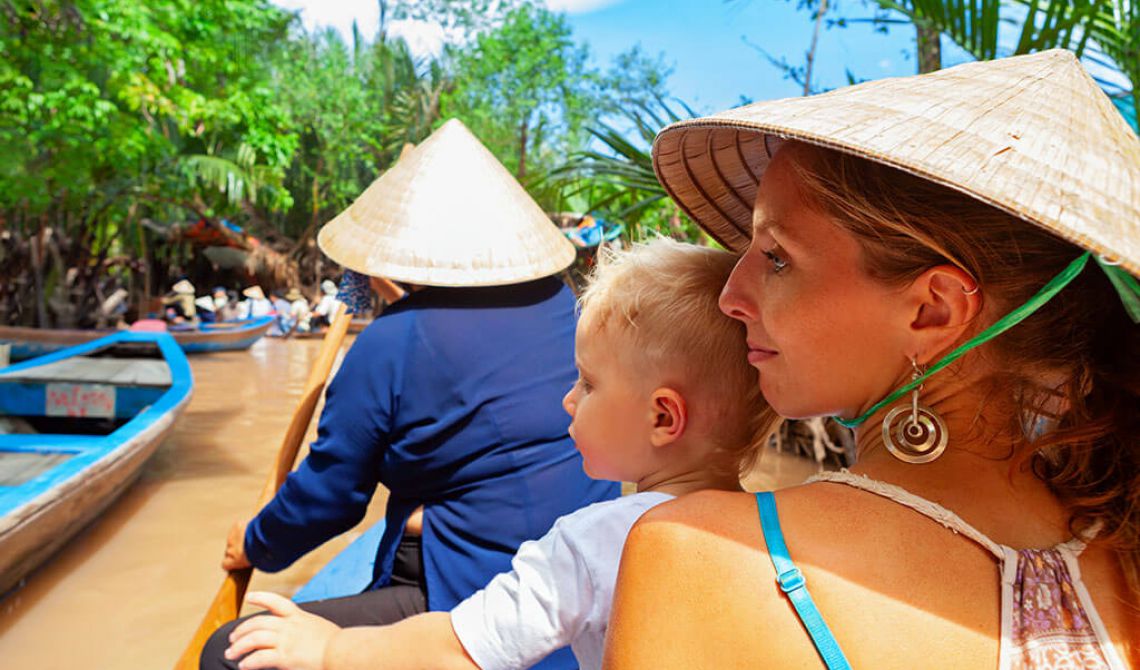 A trip to Mekong Delta to immerse yourself in the natural beauty and the rich culture of the vibrant southern Delta region. Boating down the river to experience the local life, fishing port, fishing floating house, enjoy the local folk song music and seasonal fresh fruit. Mekong Delta is known as The Nine Dragon river delta since it is formed by nine rivers. The background of this area is the largest site of endless paddy rice fields, coconut farms, tropical fruit gardens.