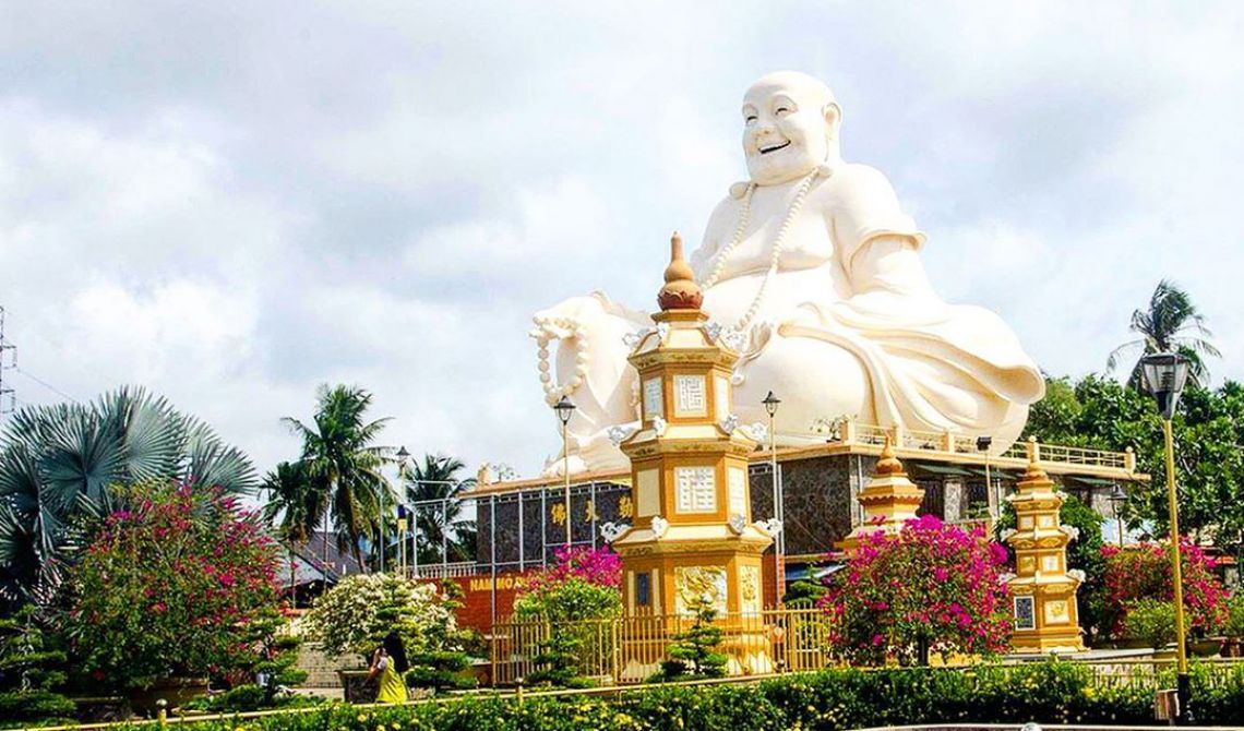 On day 1, start your day with an 8:30 AM pick-up from your centrally located hotel in Ho Chi Minh City. Then head to the city of My Tho by bus. During the 1.5-hour bus drive to My Tho, learn about the cultures of the local people and enjoy the nice scenery of green rice fields. Visit Vinh Trang pagoda, the biggest pagoda in Mekong Delta. Continue to My Tho and take a boat trip along Mekong River. During the cruise, see fish cages and floating houses on the river. The boat will take you to a small canal, where you can escape the busy town. The cruise through the coconut trees lined canal will take you to a coconut island in Ben Tre. Disembark, walk around the village and visit a local family to enjoy tropical fruit, taste honey tea, honey wine and listen to Vietnamese traditional music, performed by the villagers. Continue walking on the village’s road to a coconut candy shop to learn how to make candy and see some handicrafts made from coconut trees. Take a walk through the village and discover many kinds of fruits, flowers, trees, and local houses. Take your time and take nice photos while enjoying the natural scenery. Then, head to a local restaurant and enjoy a local Vietnamese lunch under the tree shade. After lunch, have free time to walk or bike around the village, then travel by ferry and bus to Can Tho, the heart of Mekong Delta.