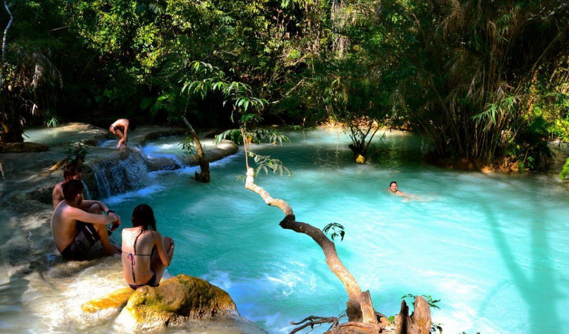 Then, transfer by private vehicle to Khouang Si waterfall. On the way, you can visit to the Lao ethnic minority groups – Ban Na Oune Village. Once at the waterfalls, take a leisurely hike through the national park towards the Khouang Si waterfalls and pass by the Asian bear rescue center. You will enjoy feeling the mist of the cool, turquoise waters of the different waterfalls. Swimming in the refreshing waters is possible.